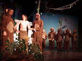 Nicht nur für die 33 Darsteller auf der Bühne, sondern das ganze "Dschungelbuchteam" ist das bekannte Theaterstück eine große Herausforderung, die sie großartig meisterten. Bühne, Eingangshalle und Theatersaal wurden in einen riesigen, eindrucksvollen Dschungel verwandelt, stimmungsvolle Musik wird den Besucher sofort verzaubern.