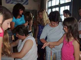| Alle Kinder werden für die Anfertigungen der Kostüme vermessen. |